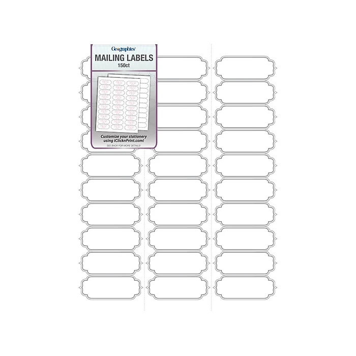 Address important invitations, letters, and other mail with these elegant-frame labels. The high-quality adhesive produces a strong seal and offers durability, while the border design provides a professional appearance. These Geographics elegant-frame mailing labels work with inkjet and laser printers for versatility, and the 20-pound paper weight adds minimal bulk to correspondence.