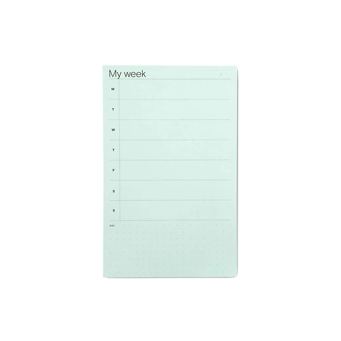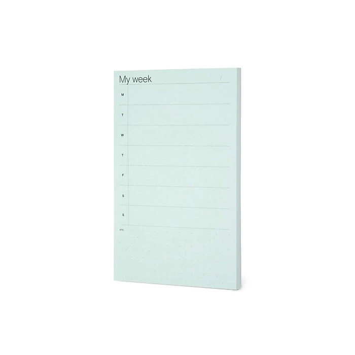 The 4.9 in. x 7.7 in. turquoise weekly planner pad can help you plot out a week’s worth of important events and to-dos. Featuring a unique adhesive designed to work on paper, these notes are great for use in planners or on calendars. 1 Pad/Pack, 100 Sheets/Pad. Post-it® Notes are recyclable.