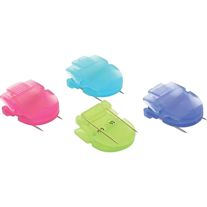 Post important papers on cubicle walls or corkboards by using these Advantus cubicle clips. Each clip in this assorted-color 50-pack mounts quickly and easily to brighten up office space. When not in use, the pins retract for safe handling. These Advantus cubicle clips are safe for soundproof walls; each one slides securely downward and doesn’t puncture the inner wall structure.