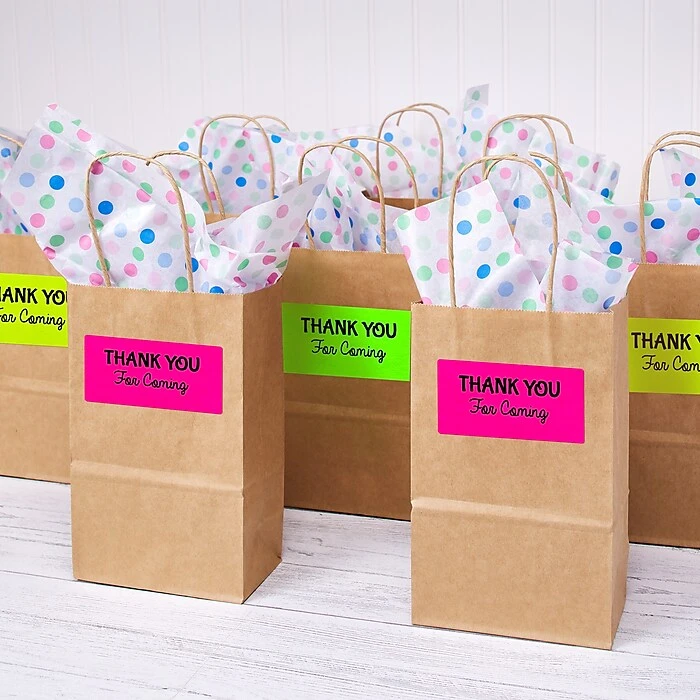 - Use the bright neon labels as color coding ID labels, organization labels, shipping labels, folder labels, or party favor labels
