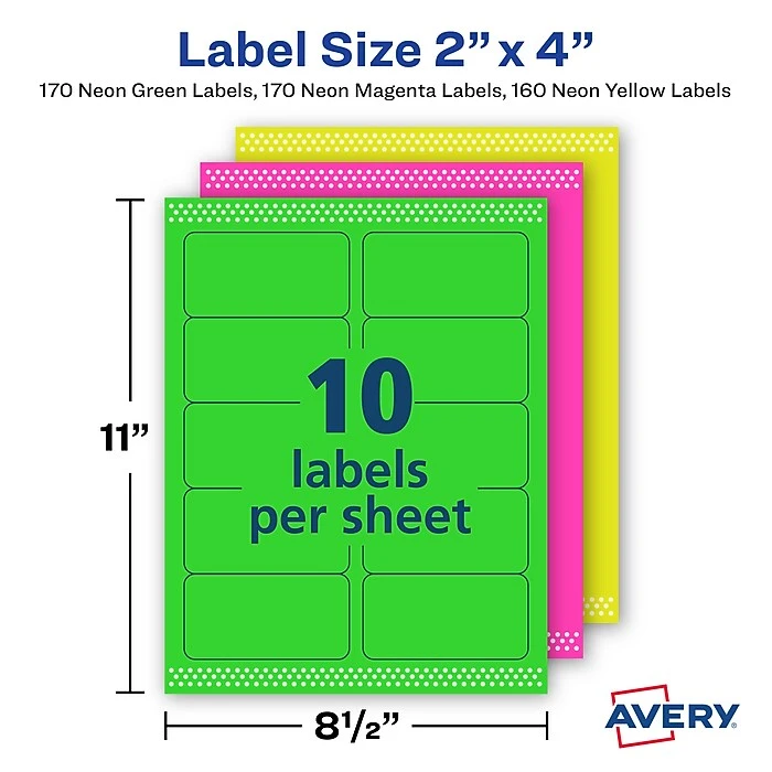 - Print your neon Avery labels without any jams or misalignments using Avery Sure Feed technology