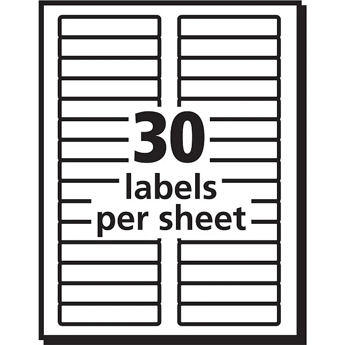 - 30 labels per sheet, 50 sheets per pack; 1500 total labels