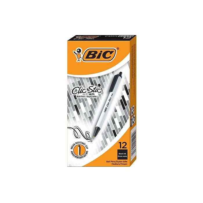 A classic BIC Clic Stic ball pen is convenient and affordable. This retractable ballpoint pen features a comfortable round barrel design perfect for all-day use. Its versatile 1.0mm medium point makes this pen a great choice for everything from list-making to note-taking. The break-resistant pocket clip makes it easy to bring the BIC Clic Stic ball pen with you, wherever you go.