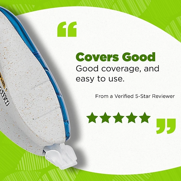 This Wite-Out Brand correction tape is not only made from recycled plastic excluding tape, but the paperboard used in the packaging is made up of 100% recycled content and is recyclable. Each convenient dispenser contains 19.8 feet of white correction tape so you can draw or write safely knowing even if you mess up, there’s a fix. The BIC correction tape goes on dry, allowing you to make instant corrections with no mess and no waiting time, while the convenient size allows hands of all sizes to make quick and accurate corrections. Suitable for lefties and righties, these brightly colored correction tape dispensers are compact enough to fit in any bag so students can easily correct their work. Looking for larger quantities of eco-friendly school supplies? Choose this bulk pack of correction tape, which contains 2 BIC Wite-Out Brand tapes. Pick up BIC Ecolutions Wite-Out Brand correction tape (formerly ReVolution) for a high-quality, affordable tape you can trust.