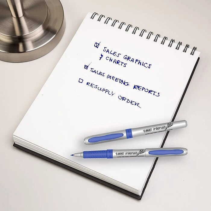 - Box of 12 ultra fine markers with vivid blue ink