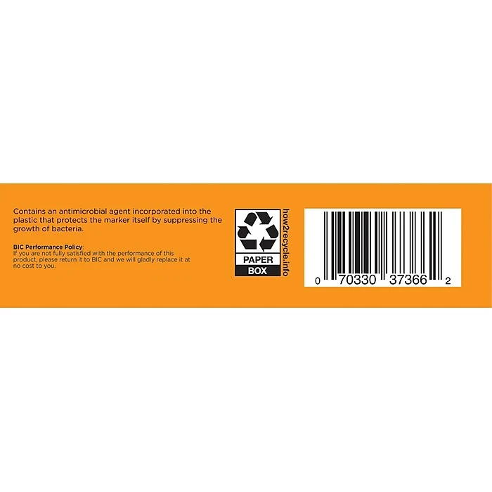 The BIC PrevaGuard permanent marker brings bold, colorful flair to your creations. With a unique cap, the hassle of drying markers stops here. Treated to help protect the marker against bacteria growth, this marker is perfect for home, office, or classroom usage. This product does not protect users or others from disease-causing bacteria, viruses, or germs. The marker features a fine point for precise, bold lines and a comfortable nonslip grip for enhanced control. The low-odor ink marks on almost any surface from glass and metal to photos and foils, making this vibrant, nontoxic marker a great choice for home, school, or office usage.