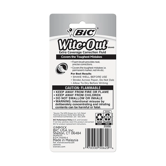 Cover up typos, unintentional marks, and other mistakes in a hurry with this easy-to-use correction fluid. The white color helps create less noticeable revisions, while the foam applicator makes it simple to get precise coverage. This Wite-Out Extra Coverage white correction fluid is compact, so you can conveniently stow it away in a briefcase or binder for quick access.
