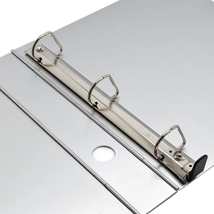 Our superior One Touch Metal 3 Ring Binders will help you keep pages safe and secure. This sturdy binder is made from recycled aluminum right here in the USA, and features a finger hole for easy, shelf retrieval. Binder corners are rounded for comfort and a rounded cover edge gives the binder an attractive, clean design. The antimicrobial protected recycled aluminum is ideal for medical and laboratory use. 3 Ring mechanism is heavy-duty, opening and closing with one simple touch. Slanted D rings so pages lie flat, with perfectly ball and socket ends for page turning without snags.