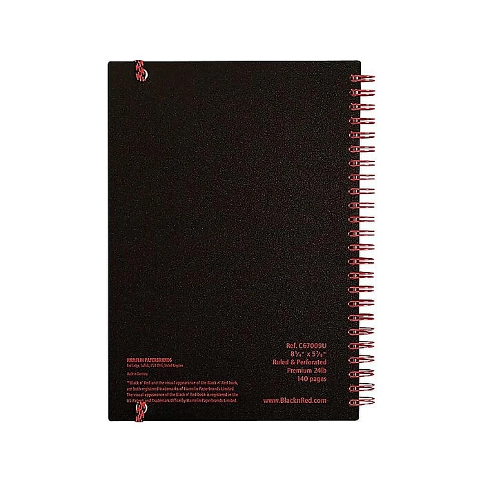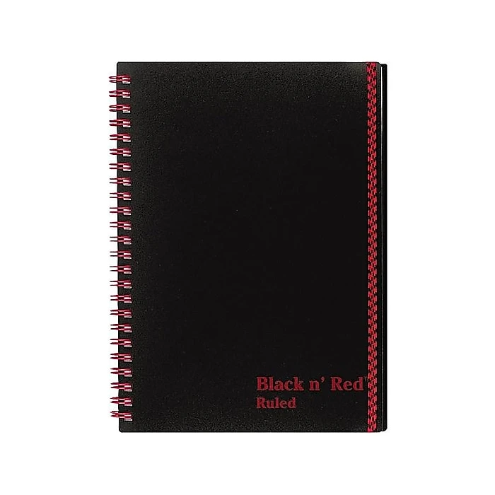 Get durable storage for important notes by using this 70-sheet soft-cover business notebook. The twin-wire binding of this notebook lets pages lie flat to make writing easier, while the poly covers protect contents from spills, dirt and damage. This Black n’ Red soft-cover ruled twin-wire business notebook features 70 ruled sheets that help align notes for producing neat, legible text.