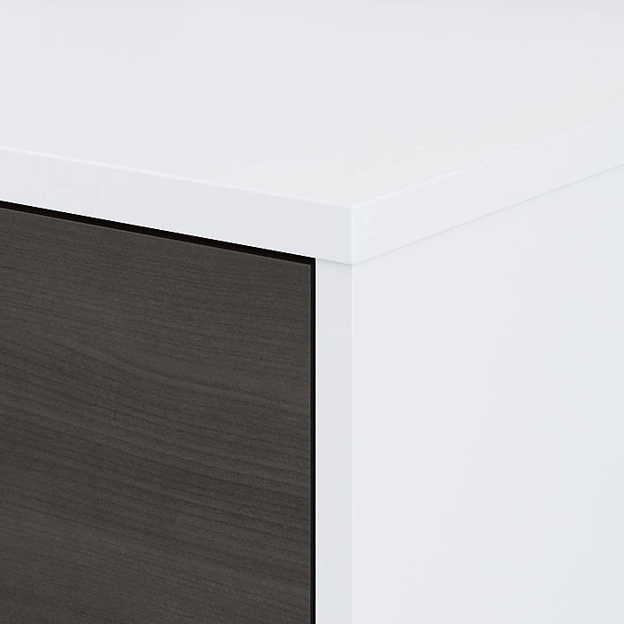 - Available in your choice of attractive white with fresh walnut, white with storm gray, or solid storm gray finish