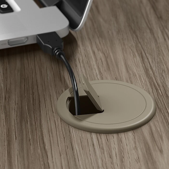 - Motorized base and a top surface with built-in wire management