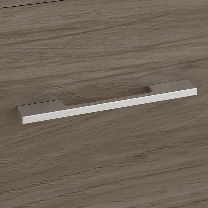 - Available in your choice of stylish black walnut, sand oak, modern hickory, and storm gray finishes with light silver drawer pulls