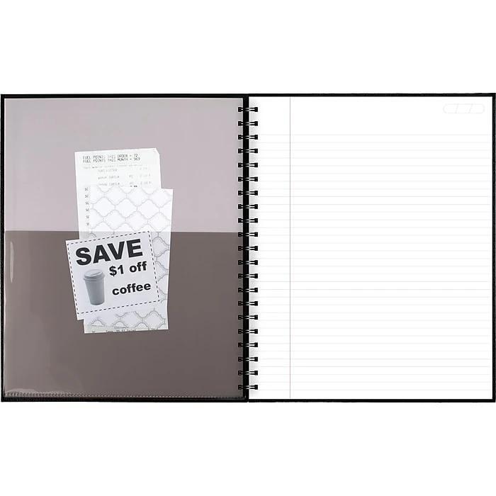 - Poly pocket stores loose sheets. Label page is included to customize the notebook. High quality paper contains a minimum of 30% post-consumer waste recycled material