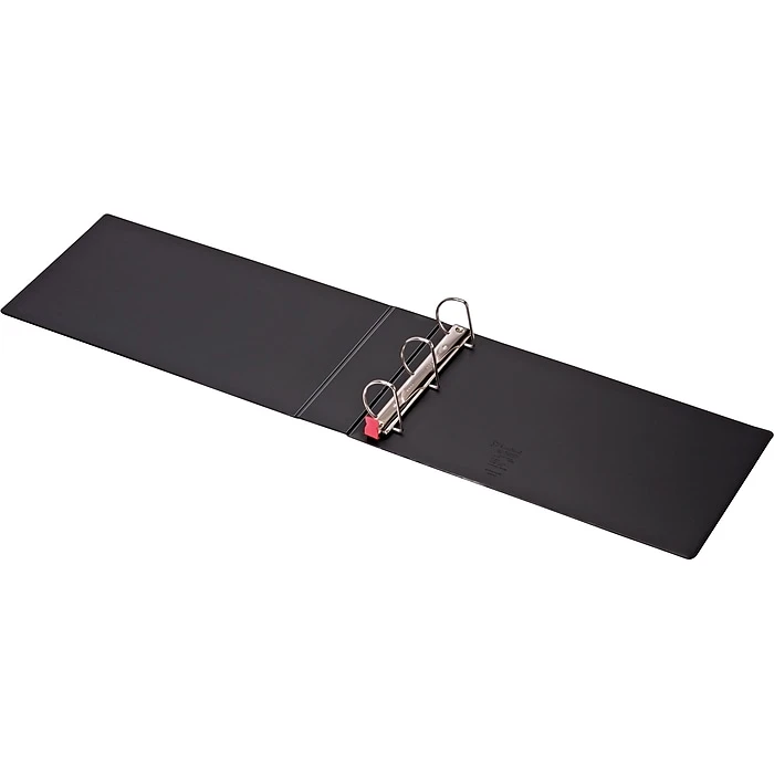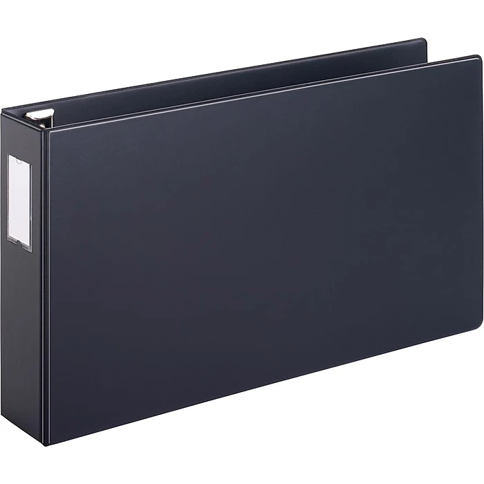 Cardinal EasyOpen Slant-D 3-inch D-ring non-view black tabloid three-ring binders secure up to 675 pages in a horizontal format. The proprietary Slant-D rings hold up to 25 percent more pages versus traditional round rings, reducing your need to order more binders. These heavy-duty binders store 11″ x 17″ pages, which is perfect for archiving large-format pages for employee timesheets, financial ledgers and marketing materials. Their sturdy construction works for storing these binders on shelves and in file cabinet drawers.