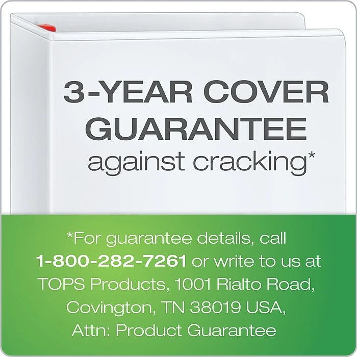Cardinal XtraLife Slant-D 5-inch three-ring non-stick locking white ClearVue binders are ideal for long-term storage of thousands of pages at a time. A non-stick surface prevents lifting, rubbing or smudging of ink to alleviate degradation of records. The Slant-D rings allow for quick and easy perusal of the documents without ripping or tearing the holes, while a clear overlay allows you to customize cover, back and spine labels with text or graphics for easy identification and archiving.