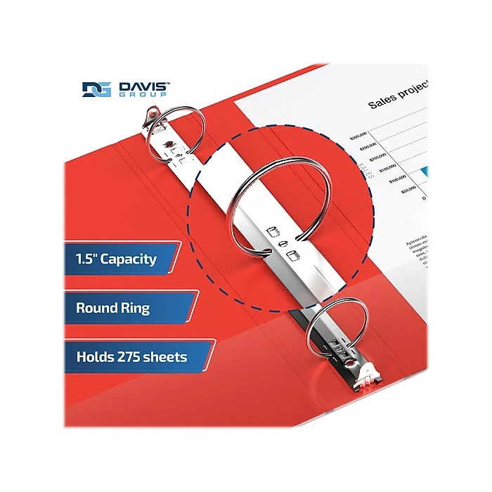 This Davis Group Premium Economy binder features a clear interior pocket on the front and back covers to secure loose documents and allow for easy identification of contents. Perfect for conferences, references, colleges, and universities. Features a full-width label holder on the spine. Made of PVC-free polypropylene for enhanced durability. 100% recycled board with 85% post consumer waste.