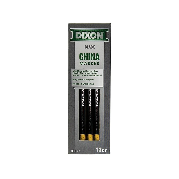 Create text and drawings that stand out using these black markers. Each one is paper wrapped and features a tear-string design, providing quick and convenient sharpening without the need for a sharpener, and the marks can quickly be wiped away afterward. These Dixon Phano China markers make bold, crisp lines on both porous and nonporous surfaces such as metal, paper, and rubber.