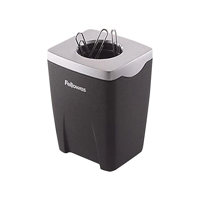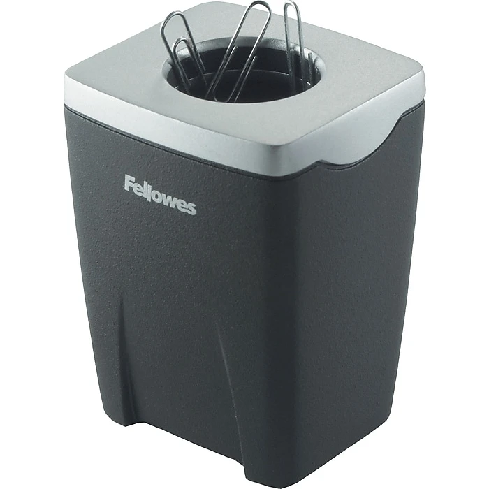 Office Suites™ Paper clip cup features magnetic top that helps paper clips to dispense easily. Clip cup comes with removable lid that makes refills a breeze and has large capacity to hold up to 150 clips.
