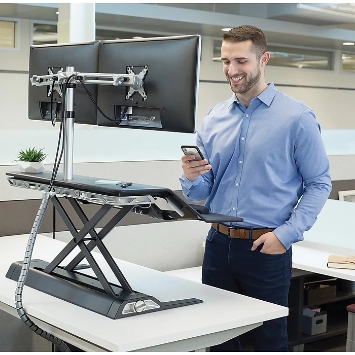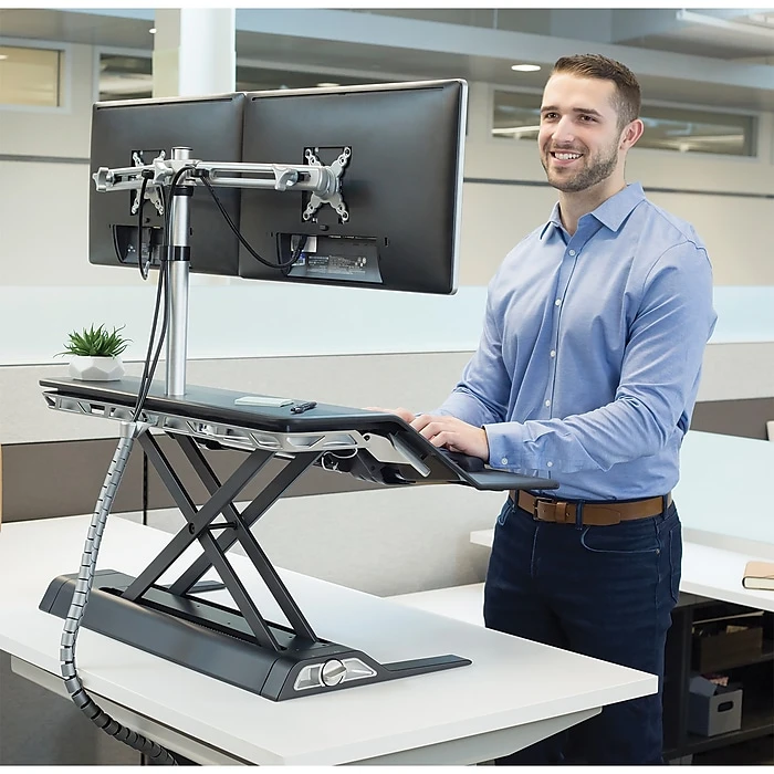 - 22 different height settings and 17” of vertical adjustments for an ergonomic and affordable solution to meet your sit/stand needs