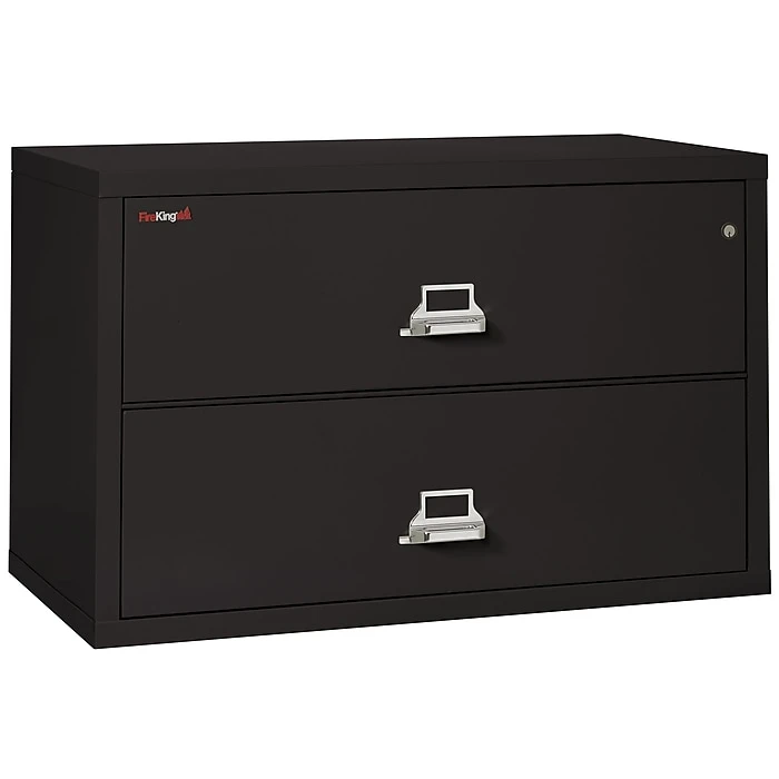 Keep computer drives and important documents safe with this file cabinet. An easy-to-access security lock at the top controls security for both drawers, and it uses anti-tip technology to reduce the chance of it overturning and spilling out the contents. Each drawer in this FireKing fireproof cabinet is individually fire and water protected to avoid proximate damage.