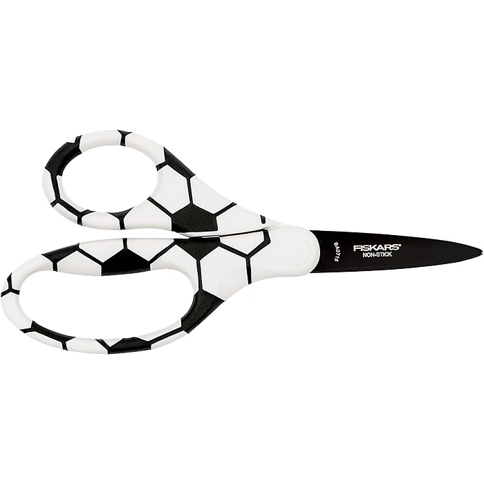 Children love MVP non-stick pointed-tip kids’ scissors because their handle features special textures and colors that remind them of their favorite sport. A contoured handle accommodates both right- and left-handed users, while non-stick blades make it easy to cut sticky classroom materials.