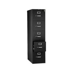 HON 310 Series 5-Drawer Vertical File Cabinet, Locking, Letter, Black, 26.5″D (H315.P.P)