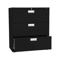 HON Brigade 600 Series 3-Drawer Lateral File Cabinet, Locking, Letter/Legal, Black, 36″W (H683.L.P)