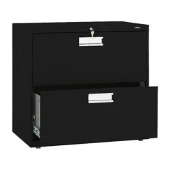 HON Brigade 600 Series 2-Drawer Lateral File Cabinet, Locking, Letter/Legal, Black, 30″W (H672.L.P)