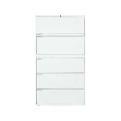 - Five-drawer lateral filing cabinet holds letter- or legal-size documents