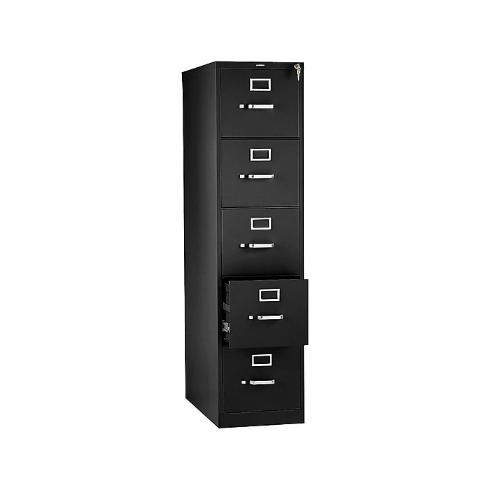 Hold essential records in this five-drawer filing cabinet. Each drawer has a thumb latch for secure closure and a steel ball bearing suspension system for a seamless glide and smooth access.
