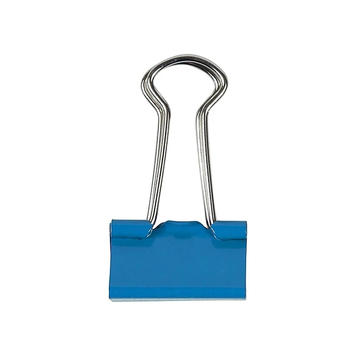 JAM Paper® Designer Binder Clips will get you organized in style! These small size binder clips measure at 19mm and are perfect for organizing and clipping documents together. The movable metal handle can be left upright so you can hang them up, or folded flat for easy storage. These clips are very versatile so use them for more then just clipping papers together! Use them to organize wires or cords, hang them from bulletin boards, or use them as stands for small items. These blue clips are made from durable metal, have a smooth, shiny finish, and are sold in packs of 25.