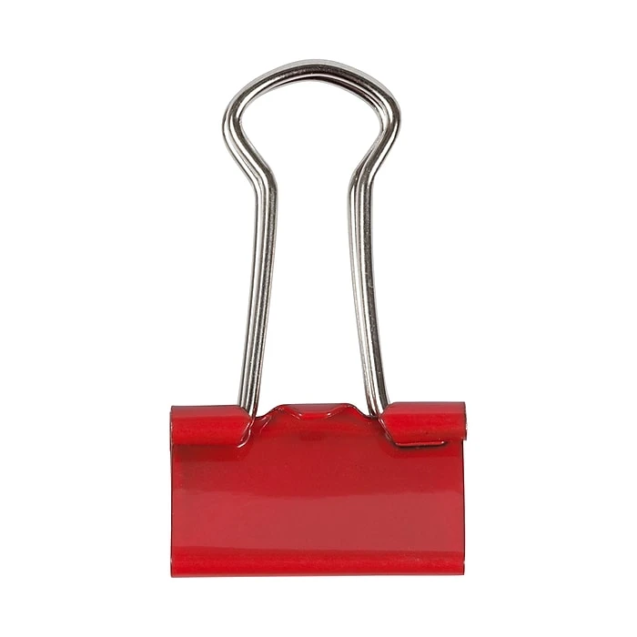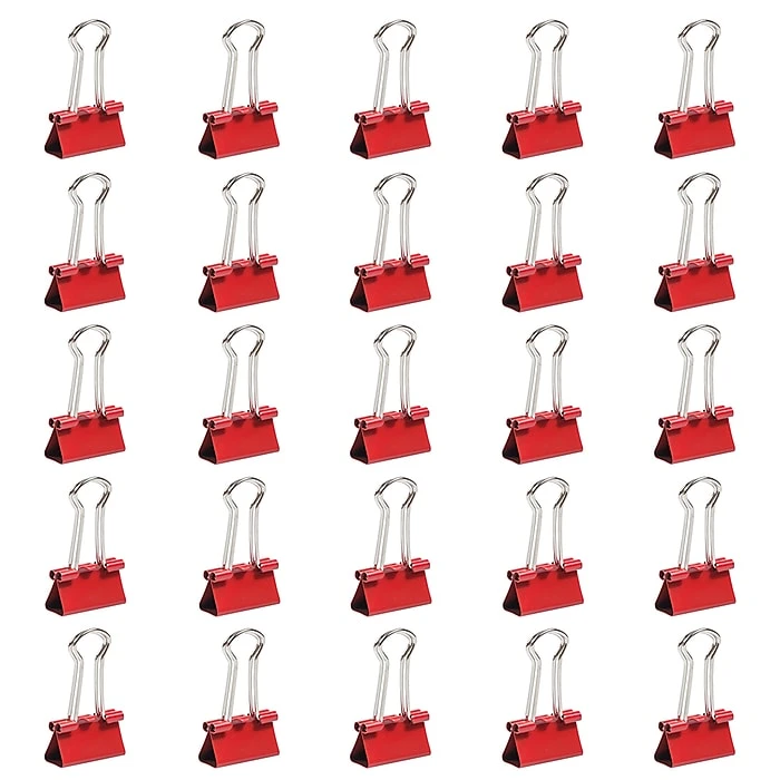 JAM Paper® Designer Binder Clips will get you organized in style! These small size binder clips measure at 19mm and are perfect for organizing and clipping documents together. The movable metal handle can be left upright so you can hang them up, or folded flat for easy storage. These clips are very versatile so use them for more then just clipping papers together! Use them to organize wires or cords, hang them from bulletin boards, or use them as stands for small items. These red clips are made from durable metal, have a smooth, shiny finish, and are sold in packs of 25.