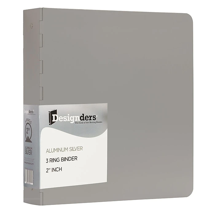 - These binders are feature an aluminum finish and are available in a wide array of colors and sizes.