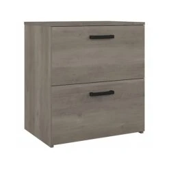 Organize your paperwork with the kathy ireland® Home by Bush Furniture City Park two-drawer lateral file cabinet. This filing cabinet utilizes Tip Guard safety features, which include a stable design, a counterweighted back panel, wall attachment hardware, and safe-open drawers. The drawers pull out one at a time for safe use and each support up to 50 lbs. of materials. Full-extension ball bearing slides provide an easy reach to documents. The rustic finish and wrought iron hardware create a modern industrial look. Place the lateral file cabinet next to a City Park desk of the same height (sold separately) to extend your work surface. This two-drawer file cabinet is tested to meet the ANSI/SOHO quality standards for safety and performance and is backed by a 3-year manufacturer limited warranty.