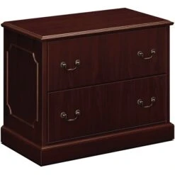 - Two-drawer lateral file cabinet presents a perfect way to store documents and supplies