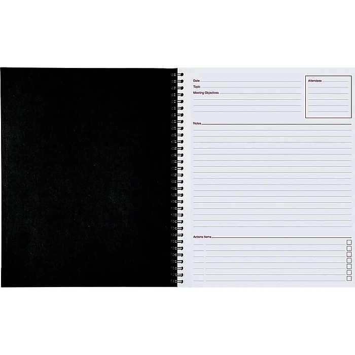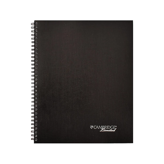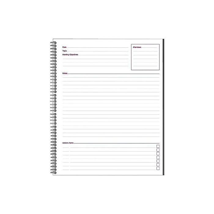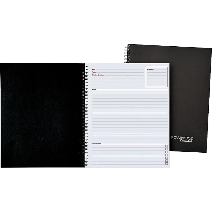 Get prepared for important appointments, interviews and other meetings by using this meeting-format notebook. The premium 20-pound recycled paper gives pages a sturdy feel while making this notebook a smart choice for the environment. This Cambridge notebook has 80 perforated pages that let you detach them cleanly, while the paper-based black linen cover protects contents from dirt and damage.