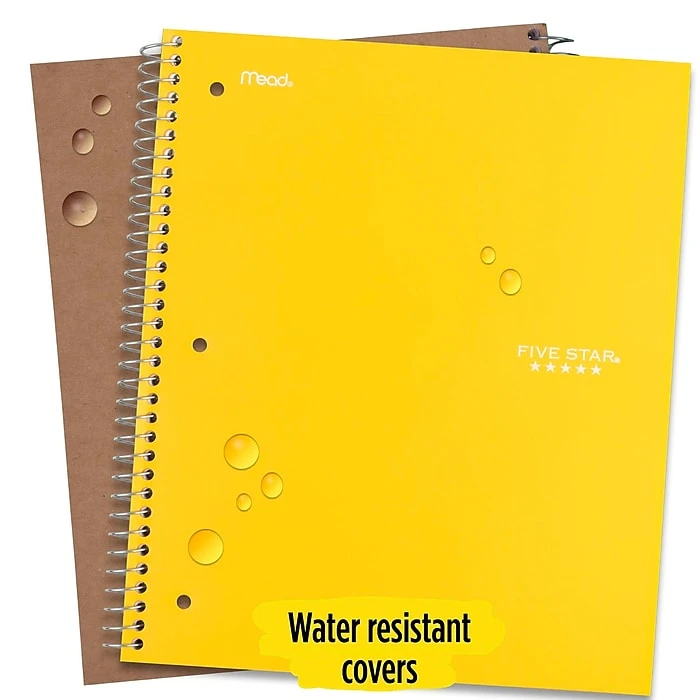 LASTS ALL YEAR. GUARANTEED!* Five Star 5 subject notebook has 200 double-sided, wide ruled sheets that fight ink bleed and are perforated for easy tear out. Sheets measure 8″ x 10 1/2″ when torn out. Tough pockets help prevent tears and hold 8″ x 10 1/2″ loose sheets. Covers are water resistant to protect your notes all year. Spiral Lock wire helps prevent snags on clothes and backpacks. Made with SFI certified paper. Notebook is recyclable – just remove the reinforcement tape on the pocket and recycle the rest! Available in Fire Red, Harvest Yellow, Forest Green, Tidewater Blue, Amethyst Purple, and Black. Color chosen for you.