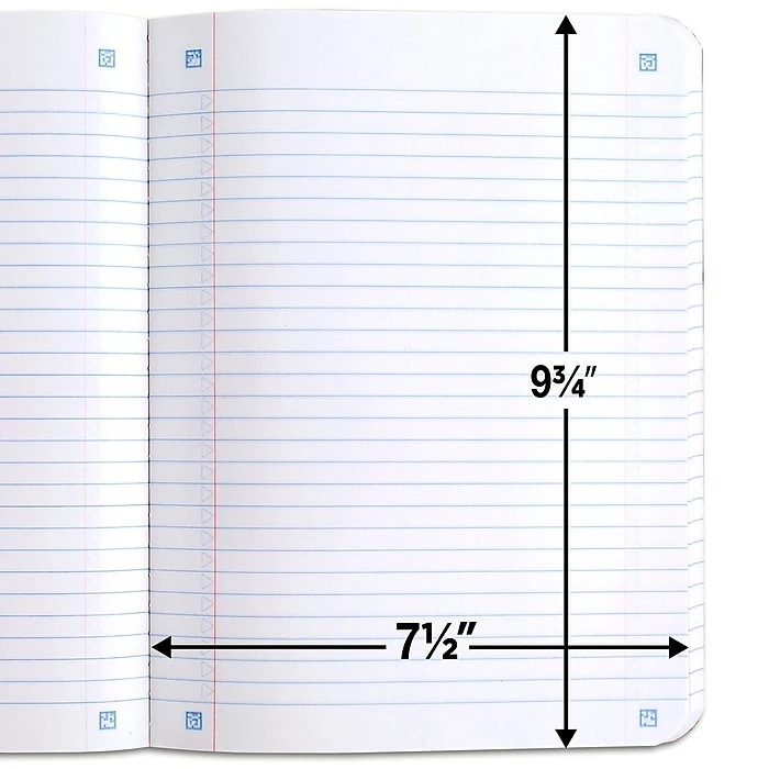 - Smooth wireless sewn binding won’t snag on your clothing or backpack. Sheets measure 7 1/2″ x 9 3/4″. Available in Fire Red, Forest Green, Pacific Blue, Amethyst Purple, White, and Black.