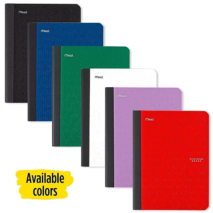 LASTS ALL YEAR. GUARANTEED!* The Five Star College Ruled Composition Book is tough enough stand up to everyday wear and tear. Compatible wIth the Five Star study app, you can easily scan, study and organize notes on your phone! Create instant digital flashcards and sync notes to Google Drive and access them anywhere from any device. This composition book has 100 double-sided, college ruled sheets of high quality paper. College ruled sheets are securely sewn in, and the durable one-piece plastic cover protects notes all year long. Cover lies flat when open for easy notetaking and the smooth wireless sewn binding won’t snag on your clothing or backpack. Each page measures 7 1/2″ x 9 3/4″. Available in assorted colors: Fire Red, Forest Green, Pacific Blue, Amethyst Purple, White and Black. Color chosen for you.