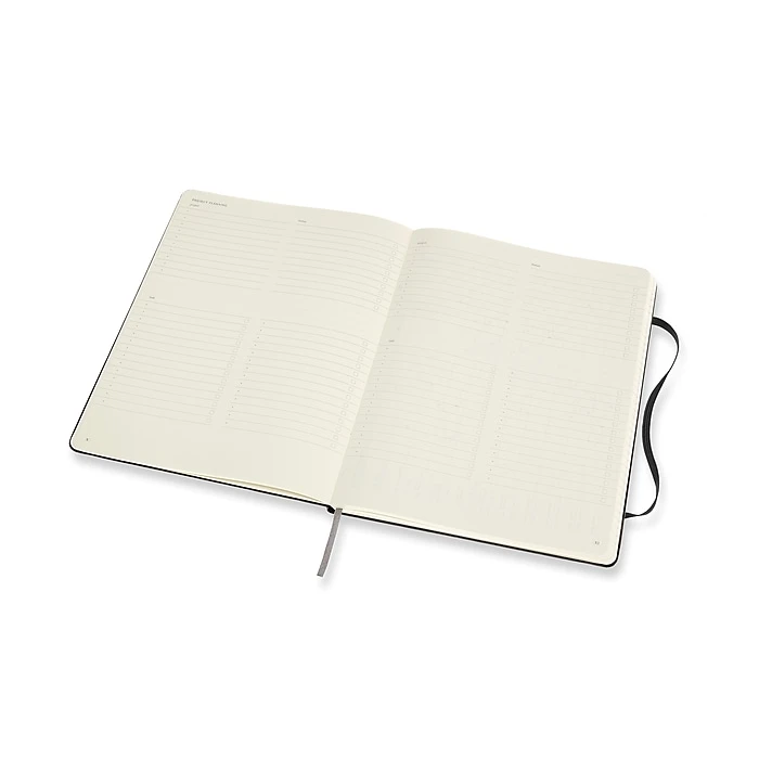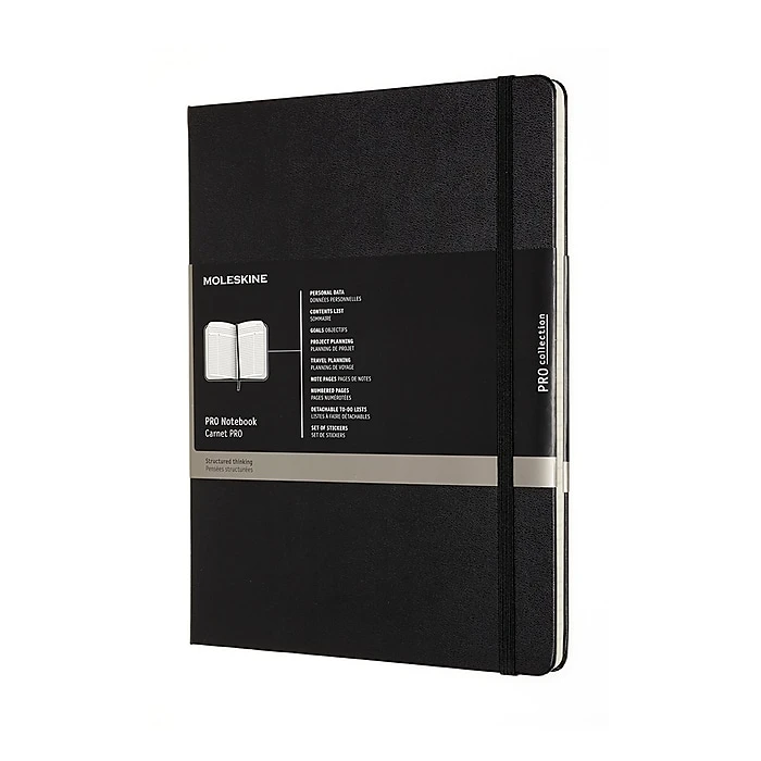 Improve productivity and track progress with this extra-large professional notebook. Numbered pages and dedicated space for project or travel planning enhance organization to meet deadlines, and an inner pocket of cardboard and fabric provides space to store loose pages. The notes pages and detachable to-do lists of this Moleskine professional notebook let you manage priorities or share ideas with colleagues.