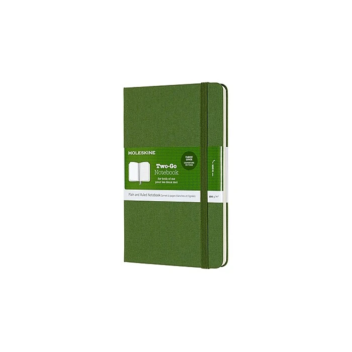 Maintain quick access to notes by carrying this medium notebook with you on the go. The paper is ivory-colored to help writing stand out, while the acid-free material prevents deterioration over time to keep work looking clean and neat. This Moleskine Two-Go medium Grass Green notebook features a hard cover to protect contents from spills, bends, and rips.