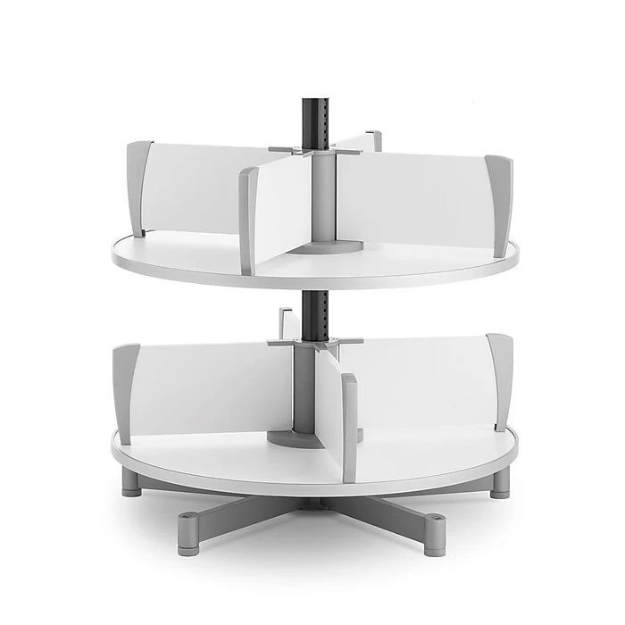 Moll® Two-tier binder and file storage carousel features 32″ diameter unit which offers abundant storage in a small area. Carousel shelf is protected with a hard rubber edge banding. Also seen in picture Top storage carousel (Item 277944) and Caster base (Item 277729) sold separately