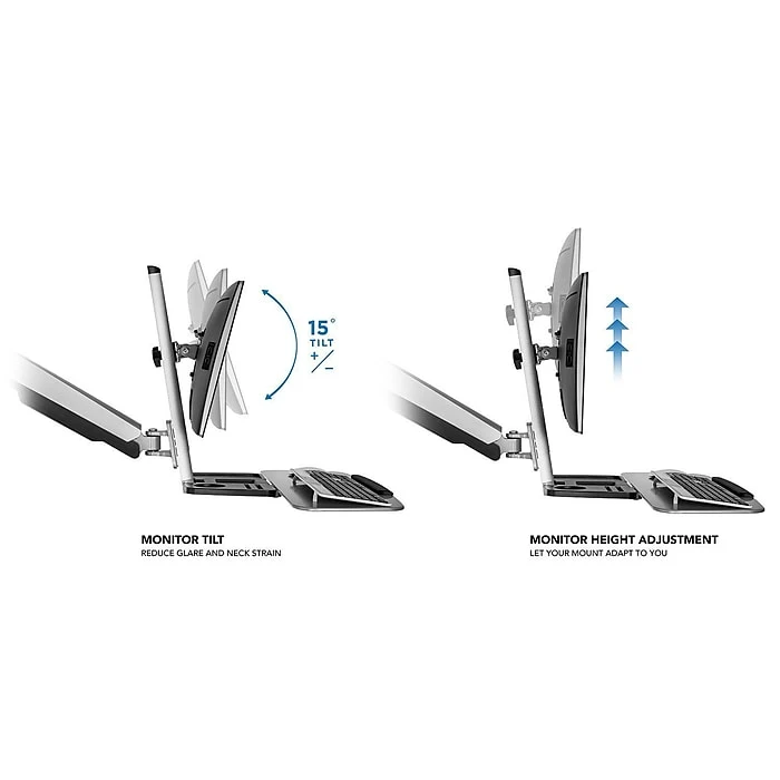 - This wall mounted standing computer workstation is full motion and is easily height adjustable up to 19.9″ for a healthy posture will sitting or standing.