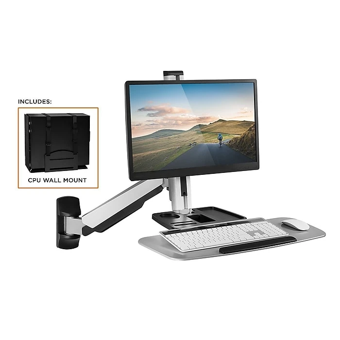 The Mount-It! MI-7905 is a full motion, wall-mounted workstation designed to give you the option to sit or stand in seconds. The heavy-duty spring arm uses counter-balance technology so you only need to set it once to the optimal tension, and then you will be able to effortlessly move your sit-stand up to 19.9″ for the desired height. The single monitor VESA bracket works with monitors up to 27″ and can be tilted for the optimal viewing angle. The wide keyboard is 26.2″ L x 10.2″ D and it conveniently folds away when you don’t need it. The MI-7905 also features an organizer tray, built-in cable management ducts, and a bonus wall-mountable, CPU holder for a complete standing computer station.