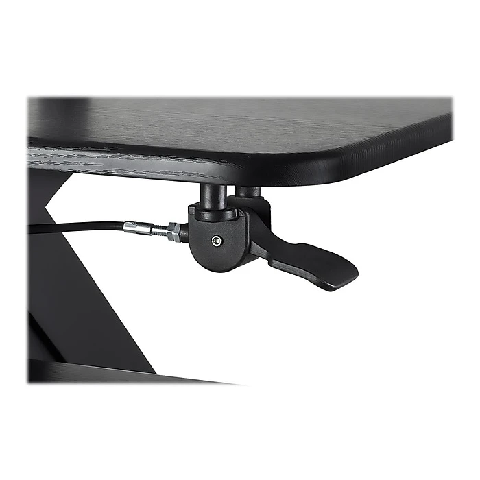 - Spring-assisted lift mechanism on this workstation allows you to raise and lower the unit in a matter of seconds