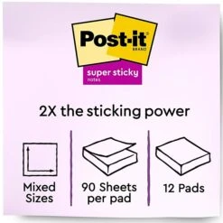 Post-it® Super Sticky Notes, 3″ X 3″, Supernova Neons, 90 Sheets/Pad, 12 Pads/Pack (654-12SSMIA)