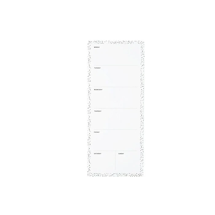 Meet Noted by Post-it®, a collection of delightfully designed desktop accessories to help inspire, wrangle and commemorate life’s most notable moments. This customizable 4.4 in. x 10.9 in. weekly calendar allows you to plan out your week however works best for you. Sheets are white with a dot pattern border. Use with other Noted by Post-it products for a coordinated look. 1 Pad/Pack, 60 Sheets/Pad.