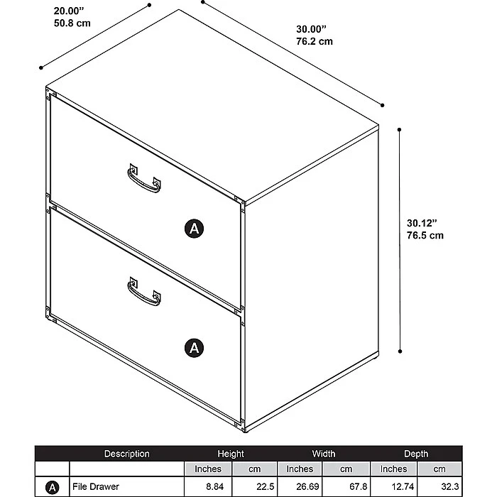 - Assembled Dimensions: 30 1/8″H x 30″W x 20″D