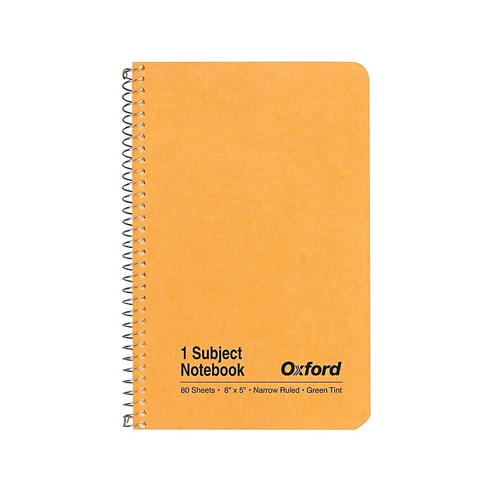 Keep this kraft one-subject notebook handy for jotting down notes and other important information. The narrow-ruled pages make the most out of each sheet, while the compact design lets you conveniently stash this notebook in a briefcase or bag. This Oxford kraft notebook has 80 sheets and uses green-tinted paper to make your writing easily stand out on each page.