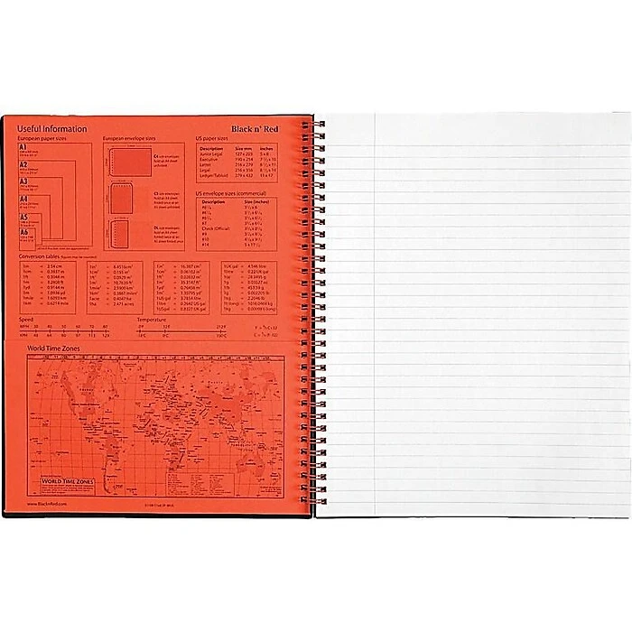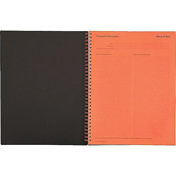 Write notes using this twin-wire business notebook. The twin-wire design holds pages securely while letting them turn smoothly, and the poly cover protects contents from spills, damage and dirt. This Black n’ Red poly-cover business notebook has 70 double-sided sheets, providing ample space to meet large note-taking needs, while the Optik Paper prevents ink from bleeding.